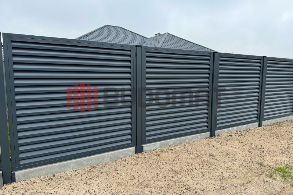 - SZAFIR – profile 80/20 ustawione w kształt żaluzji, masywny i wyrazisty wariant płotu